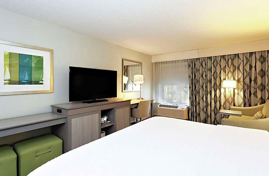 This room features a flat-screen cable TV, microwave, and small refrigerator. A small seating area is also included.